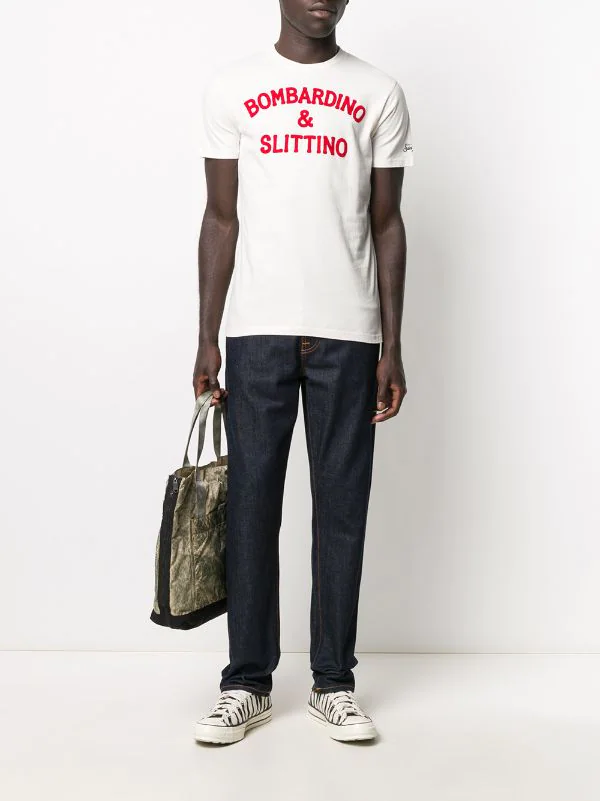 Runder Ausschnitt, kurze Ärmel, Slogan-Print vorne, gerader Saum. Farbe: Weiß. Material: Baumwolle.