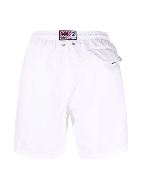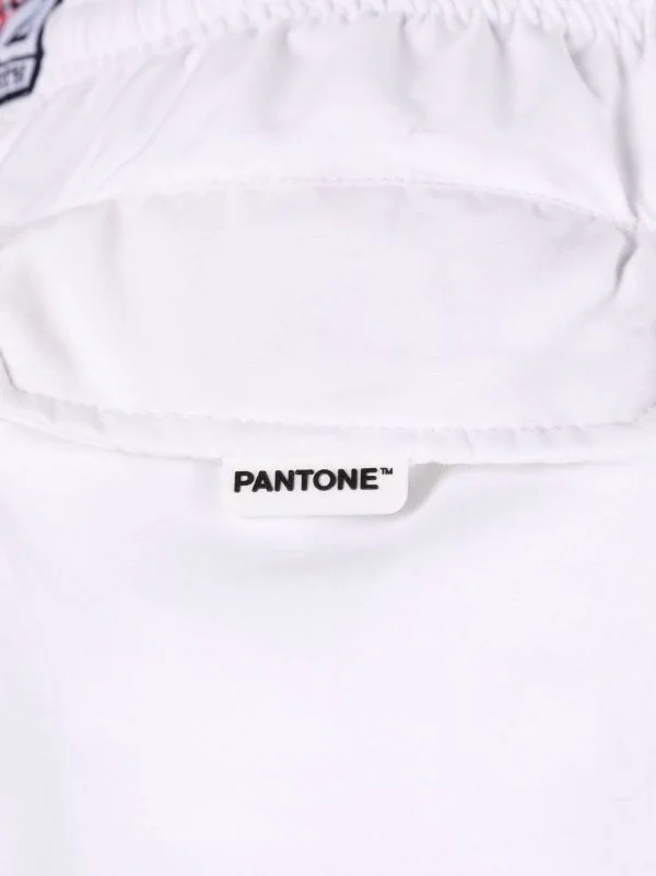 Bund mit elastischem Kordelzug, Logo-Patch vorne, Logo-Patch hinten, Klappentasche hinten. Farbe: Weiß.
