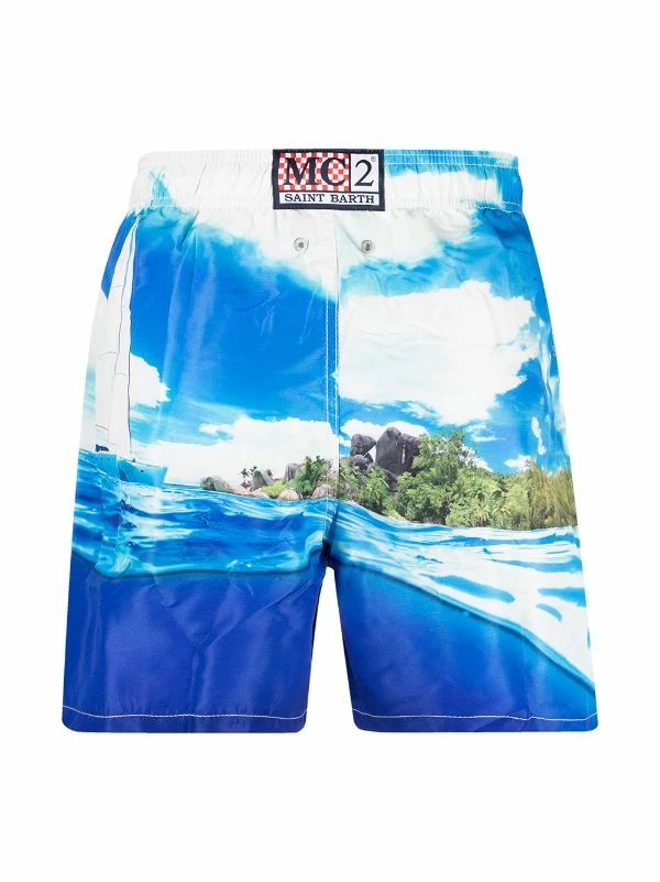 Grafischer Print, Kordelzugbund, zwei seitliche Eingrifftaschen, Logo-Patch hinten. Swimwear kann nur über Ihrer eigenen Unterwäsche anprobiert werden. Taucherbrille und Schnorchel sind optional….