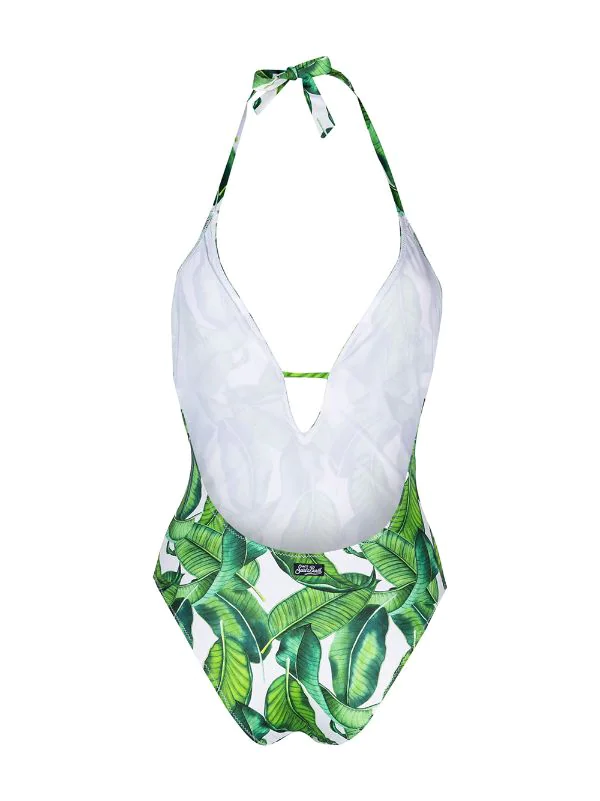 Mit Stretchanteil, Blatt-Print, Schleifenverschluss hinten, ärmellos, klassisches Bikinihöschen. Swimwear darf nur über Ihrer eigenen Unterwäsche anprobiert werden.
