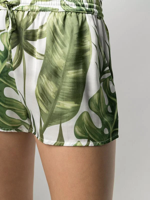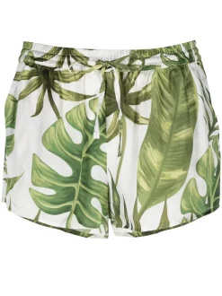 Elastischer Bund, Kordelzug, durchgehender Blumen-Print, zwei Eingrifftaschen an der Seite.