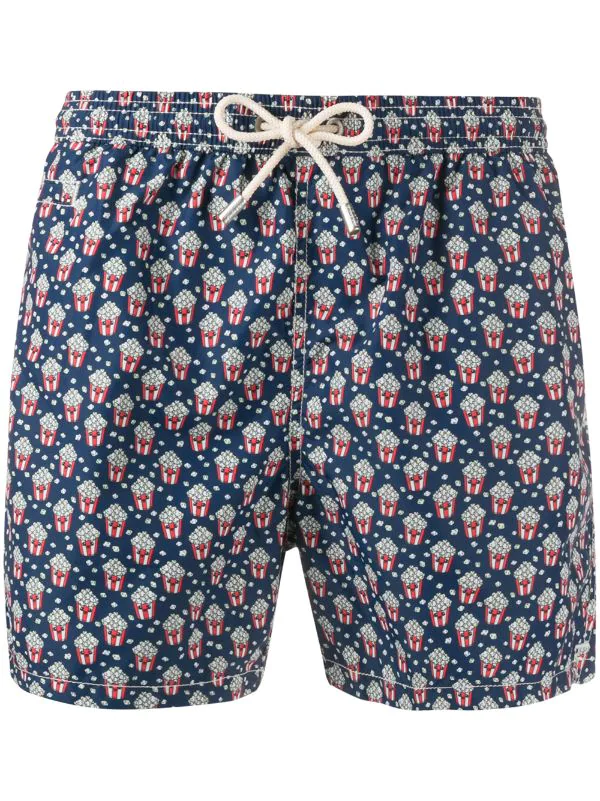 Badeshorts mit Popcorn-Print aus Stretchmaterial von MC2 SAINT BARTH. Merkmale: elastischer Bund mit Kordelzug und Logo-Patch hinten. Bademode darf nur über Ihrer eigenen Unterwäsche anprobiert werden.