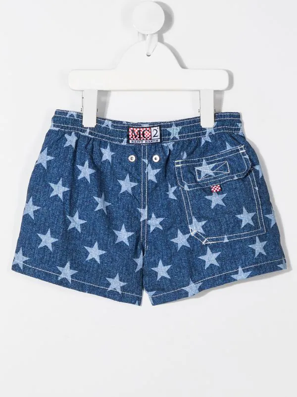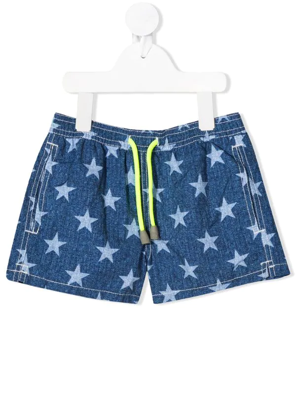 Stern-Print, elastischer Bund, Kordelzug, zwei aufgesetzte Seitentaschen, Klappentasche hinten. Swimwear kann nur über Ihrer eigenen Unterwäsche anprobiert werden. Taucherbrille und Schnorchel sind optional….