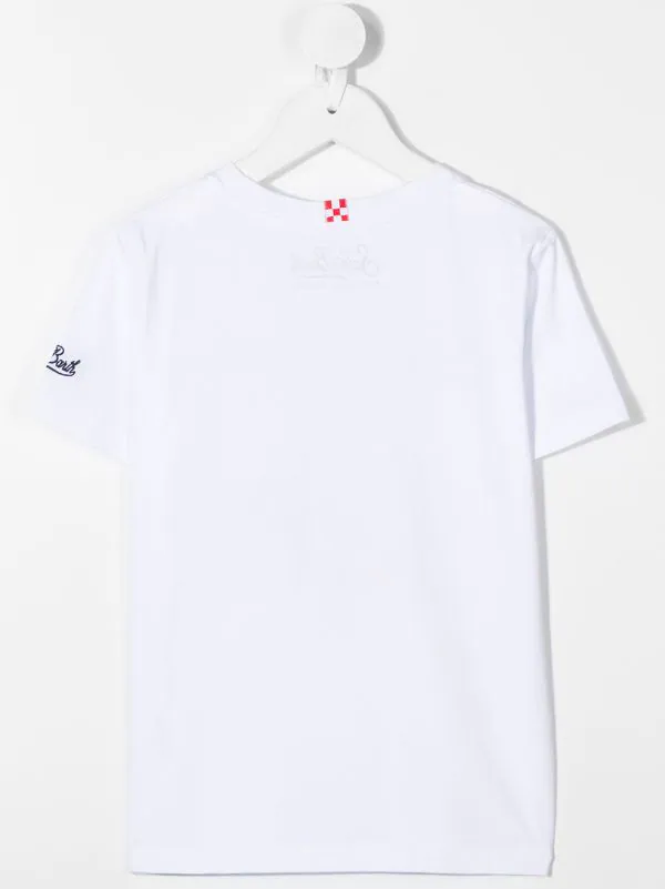 Logo-Print vorne, runder Ausschnitt, kurze Ärmel, gerader Saum. Material: Baumwolle.