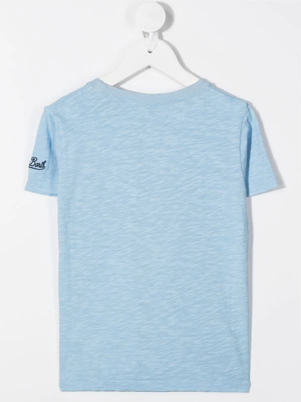 Runder Ausschnitt, kurze Ärmel, gerader Saum. Material: Baumwolle.