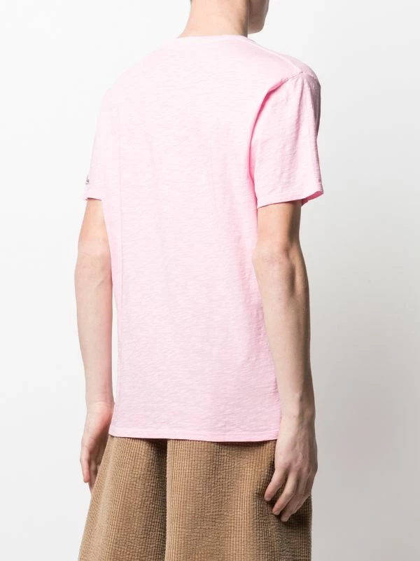 Grafischer Print, Strickjersey, runder Ausschnitt, kurze Ärmel, gerader Saum. Material: Baumwolle.
