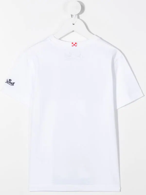 Logo-Print vorne, runder Ausschnitt, kurze Ärmel, gerader Saum. Material: Baumwolle.