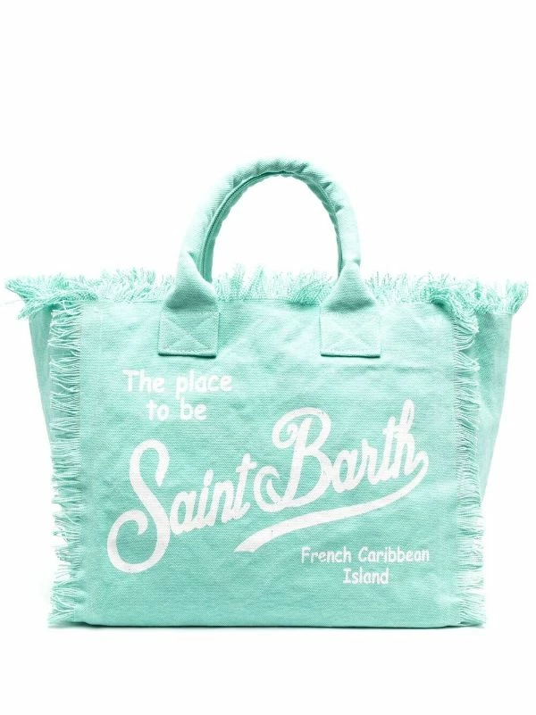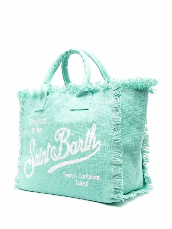 Ausgefranste Kanten, Logo-Print vorne, runde Henkel, Reißverschluss oben, Innentasche mit Reißverschluss. Material: Baumwolle.