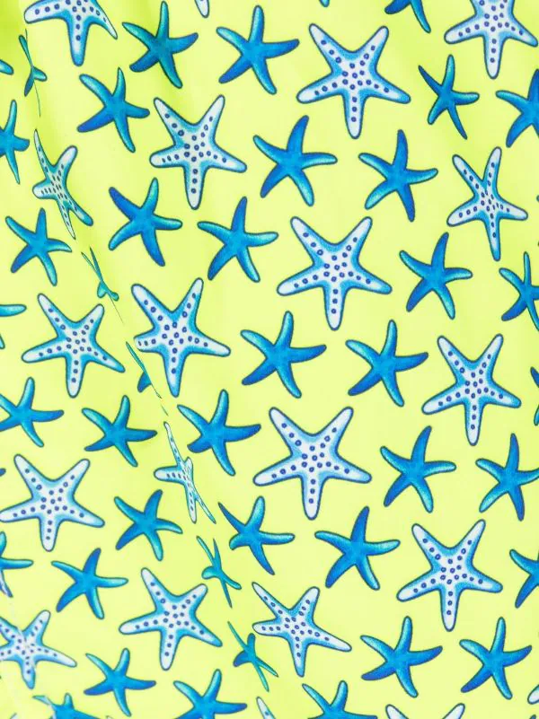 Seestern-Print , Logo-Patch hinten, Kordelzug, zwei seitliche Eingrifftaschen, eingefasste Gesäßtasche. Swimwear kann nur über Ihrer eigenen Unterwäsche anprobiert werden. Taucherbrille und Schnorchel sind optional…. BEWUSSTER SHOPPEN: Dieses Piece ist gut für den Style − und besser für die Umwelt. Es besteht aus recycelten oder upcycelten Materialien, die bei der Produktion weniger Energie und Wasser verbrauchen und somit eine geeignete Alternative zu neuen Rohmaterialien sind. Beim Waschen von synthetischen Materialien werden Mikroplastikfasern abgesondert, die in das Wasser gelangen. Wir empfehlen die Nutzung eines Waschbeutels, der die Kunstfasern auffängt..