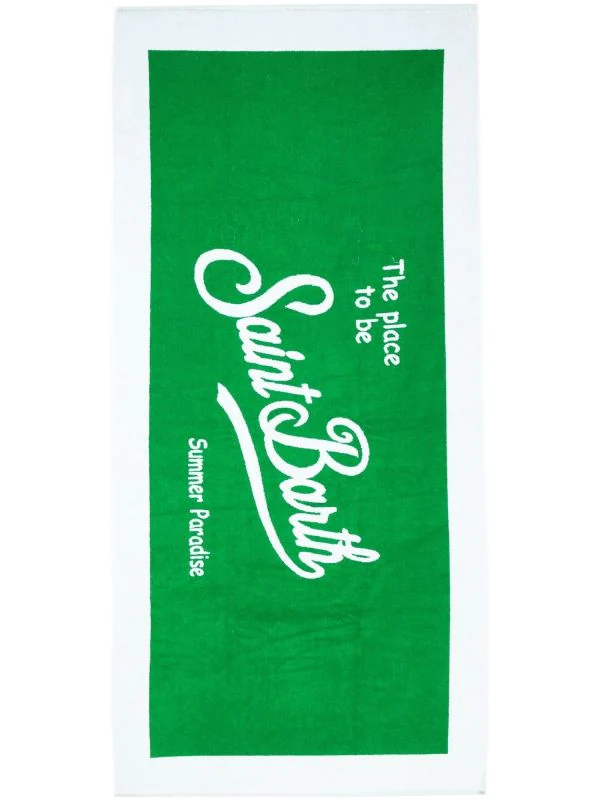 Grün, Weiß, Baumwolle, Frottee-Optik, Jacquard-Logo, Kontrastrand, rechteckig.
