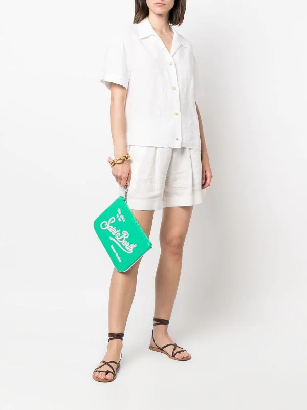 Weiß, Baumwolle, Logo-Stickerei vorne, Frottee-Finish, Reißverschluss oben, Hauptfach.