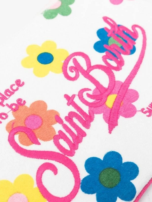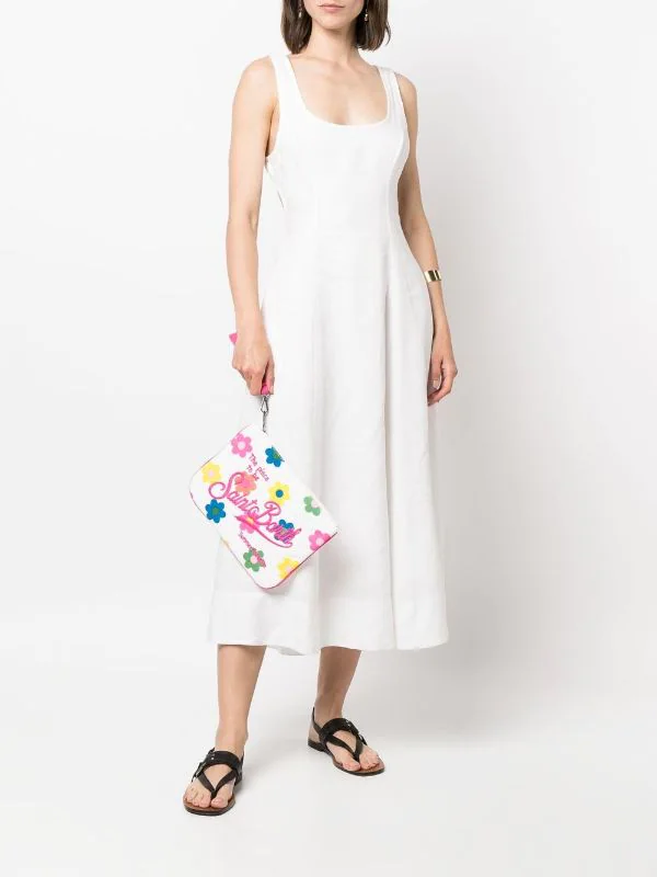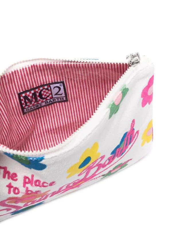 Weiß, Mehrfarbig, durchgehender Blumen-Print, Logo-Stickerei vorne, Reißverschluss oben, Hauptfach, gestreiftes Futter.