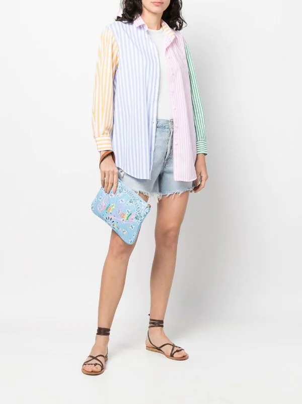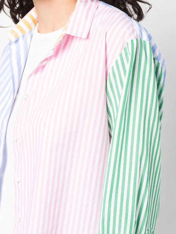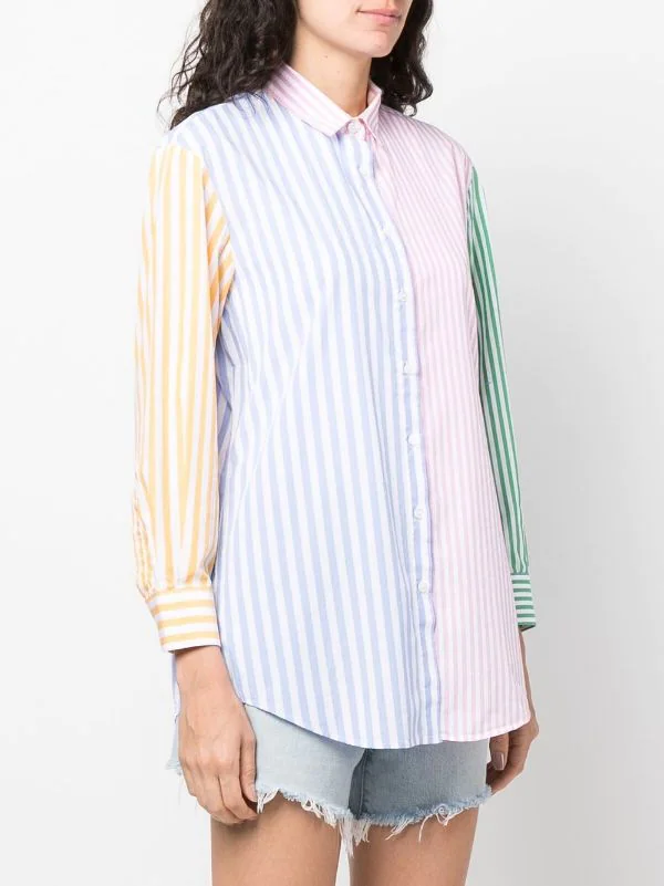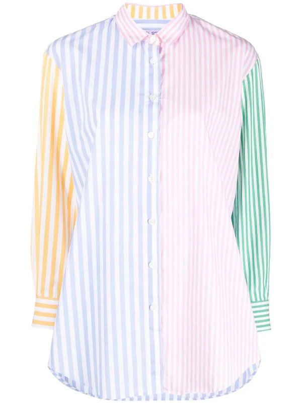 Baumwolle, Slogan-Stickerei, aufgedruckte Längsstreifen, klassischer Kragen, lange Ärmel, Knopfmanschetten, Knopfverschluss vorne, abgerundeter Saum.