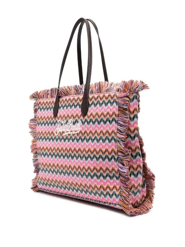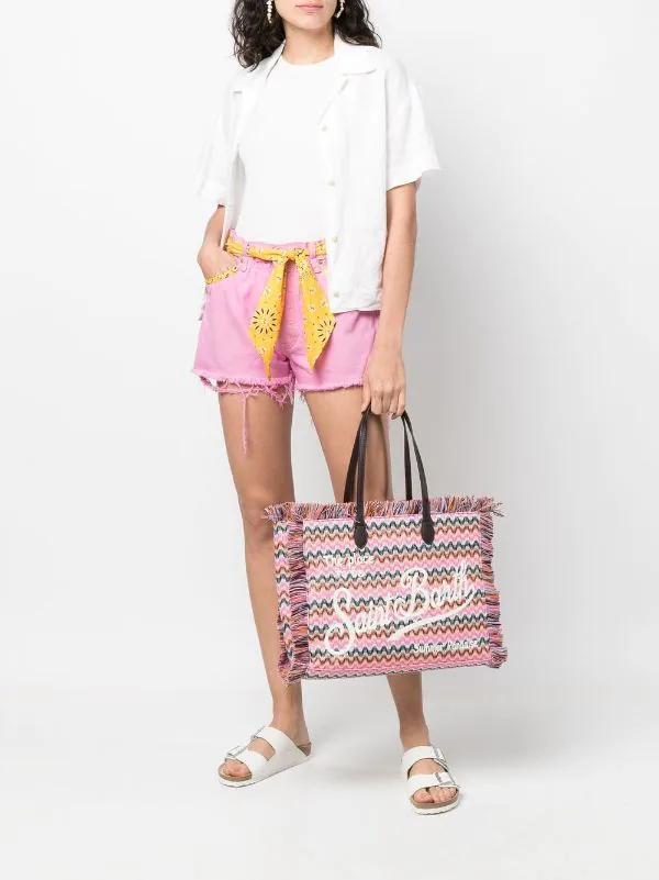 Pink, Baumwolle, Fransen-Detail, schmale Henkel, oben offen.