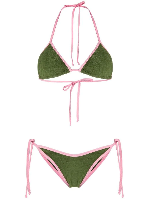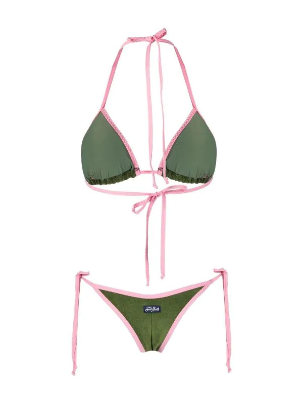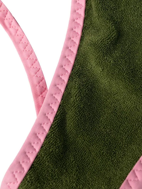 Militärgrün, Hellpink, Baumwollgemisch, Frottee-Optik, Kontrastbesatz, Triangel-Design, Neckholder hinten, Schleifenverschluss hinten, Logo-Patch hinten, tiefe Taille, Schleifenverschluss an der Seite. Swimwear kann nur über Ihrer eigenen Unterwäsche anprobiert werden. Taucherbrille und Schnorchel sind optional….