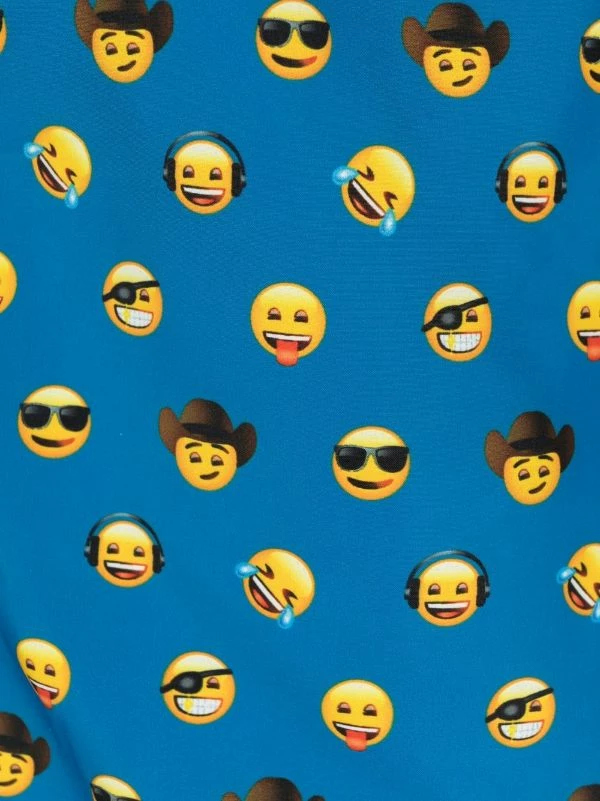 Electric Blue, recyceltes Polyamid, Smiley-Print, Logo-Patch hinten, Kordelzugbund, zwei seitliche Eingrifftaschen, eingefasste Gesäßtasche. BEWUSSTER SHOPPEN: Dieses Piece ist gut für den Style − und besser für die Umwelt. Es besteht aus recycelten oder upcycelten Materialien, die bei der Produktion weniger Energie und Wasser verbrauchen und somit eine geeignete Alternative zu neuen Rohmaterialien sind. Beim Waschen von synthetischen Materialien werden Mikroplastikfasern abgesondert, die in das Wasser gelangen. Wir empfehlen die Nutzung eines Waschbeutels, der die Kunstfasern auffängt.