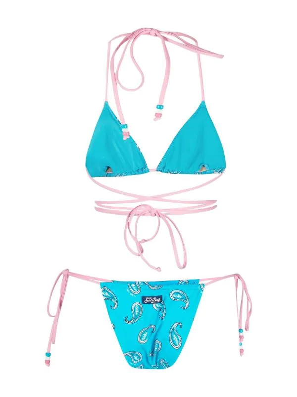 Türkis, Stretch-Design, Paisley-Print, Neckholder hinten, Schleifenverschluss hinten, Schleifenverschluss an der Seite. Swimwear kann nur über Ihrer eigenen Unterwäsche anprobiert werden. Taucherbrille und Schnorchel sind optional….