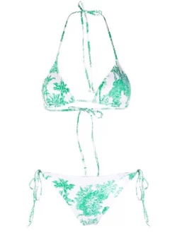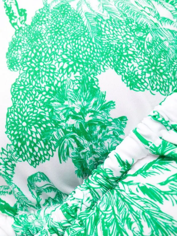 Bone White, Waldgrün, Stretch-Design, durchgehender Blumen-Print, Logo-Patch hinten, tiefe Taille, Schleifenverschluss an der Seite. Swimwear kann nur über Ihrer eigenen Unterwäsche anprobiert werden. Taucherbrille und Schnorchel sind optional….
