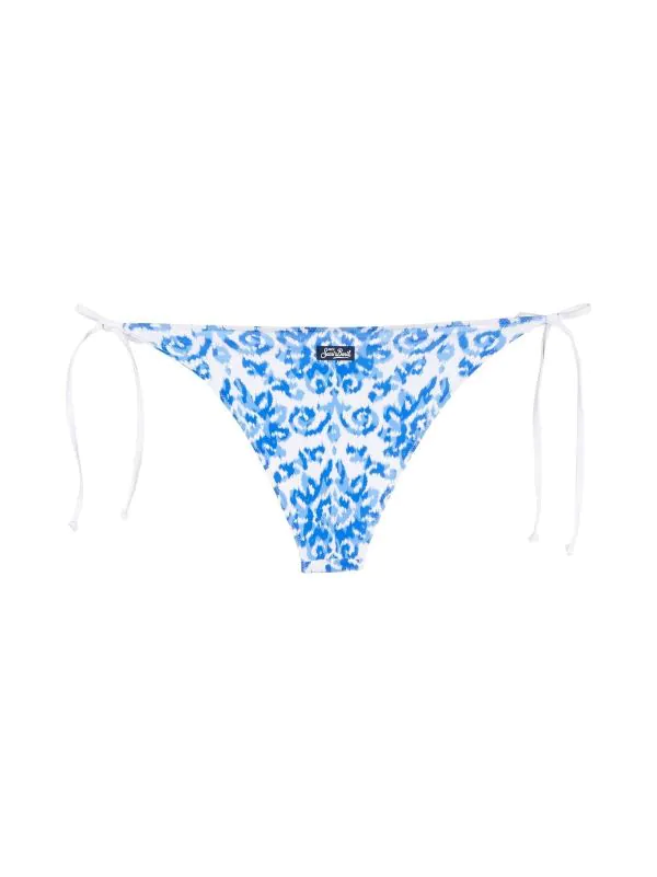 animal-print side-tie bikini-bottoms from MC2 SAINT BARTH featuring blue, stretch-design, animal print, side-tie bottoms, low-rise and light to medium coverage. Be mindful to try on swimwear over your own garments..