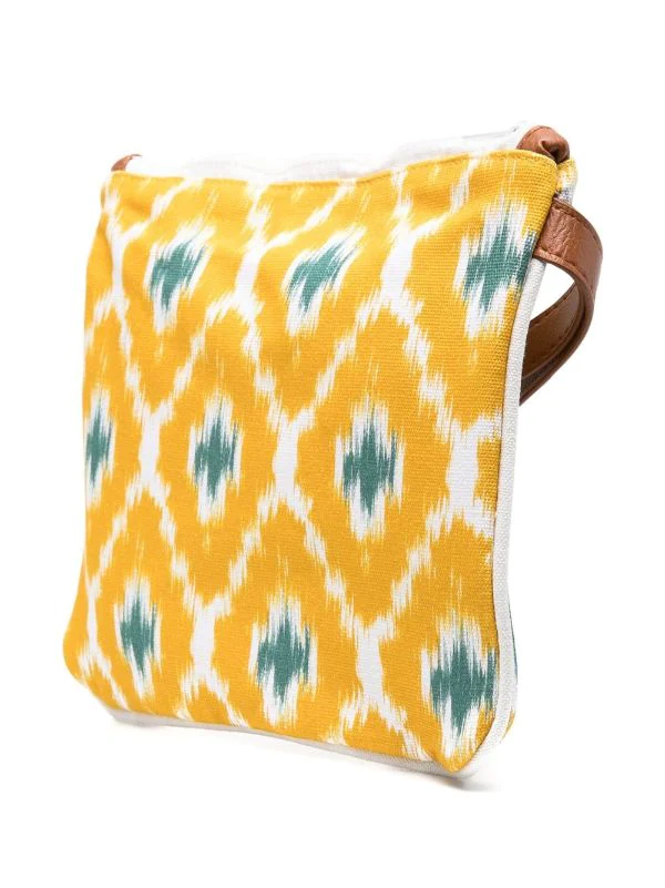Gelb, Baumwollgemisch, geometrischer Print, Logo-Print vorne, Handgelenkschlaufe, Reißverschluss oben, Logo-Patch an der Innenseite.
