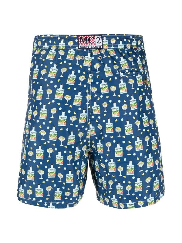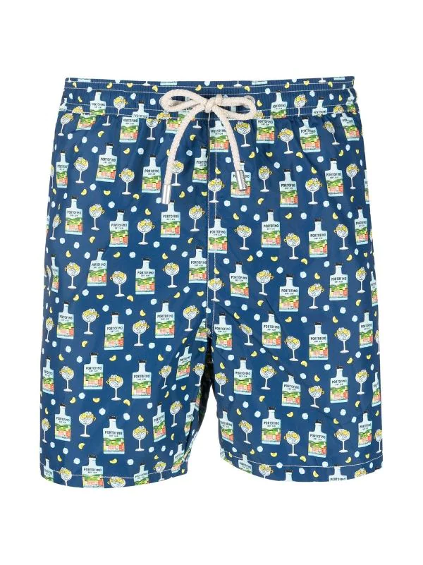 Blau, grafischer Print, Kordelzug, gerades Bein. Diese Brille wird mit einer Schutzhülle geliefert.