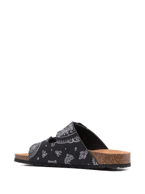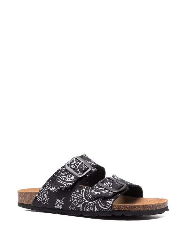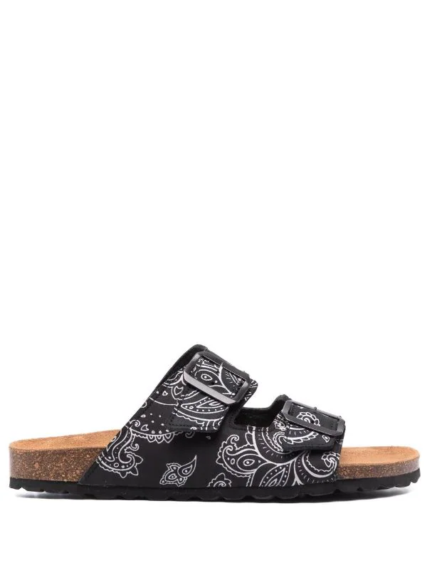 Paisley-Print, Zierschnalle, ohne Verschluss, zehenfrei, geformtes Fußbett, flache Gummisohle.