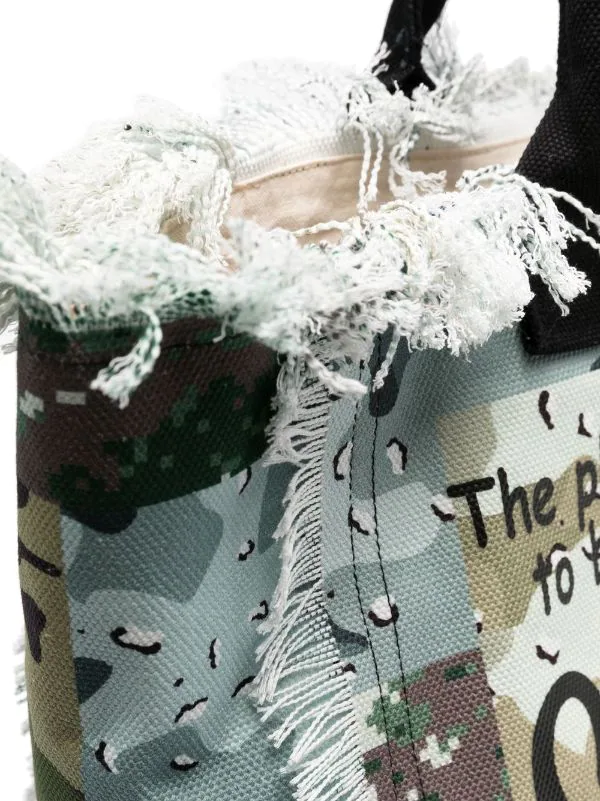 Mehrfarbig, Baumwolle, Logo-Print vorne, Fransen-Detail, oben offen, runde Henkel, Hauptfach.