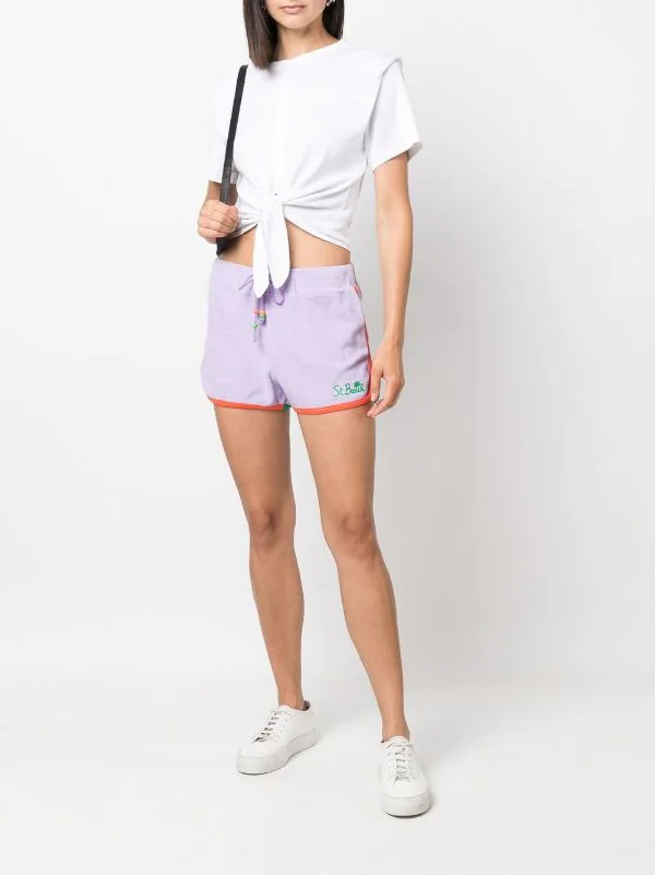 Helllila, Orange, Baumwollgemisch, Frottee-Optik, Logo-Stickerei vorne, Kontrastbesatz, Bund mit elastischem Kordelzug, abgerundeter Saum.