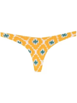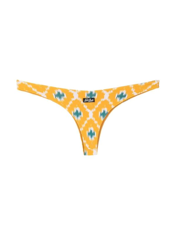 Naomi graphic-print bikini bottoms from MC2 SAINT BARTH featuring dark yellow, cotton blend, all-over graphic print and logo patch to the rear. Be mindful to try on swimwear over your own garments..