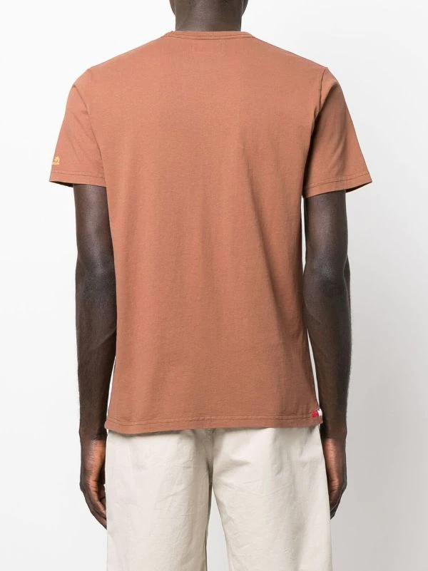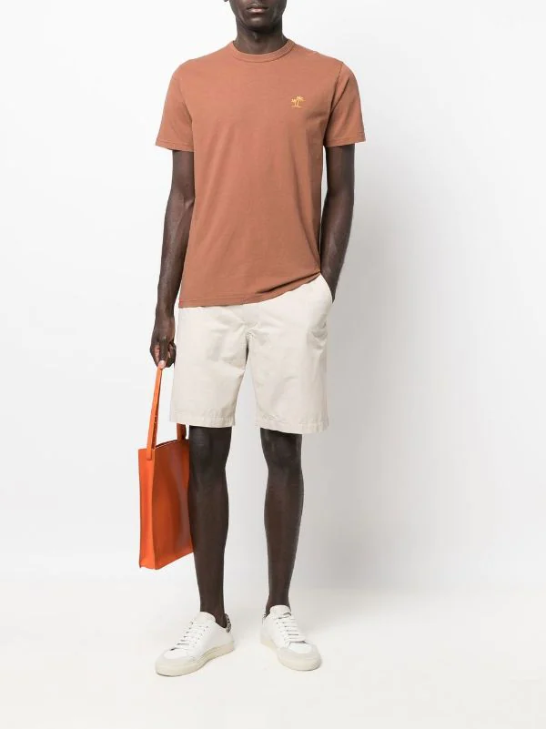 Strickjersey, bestickter Saum, runder Ausschnitt, kurze Ärmel, gerader Saum.