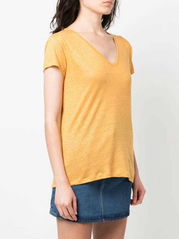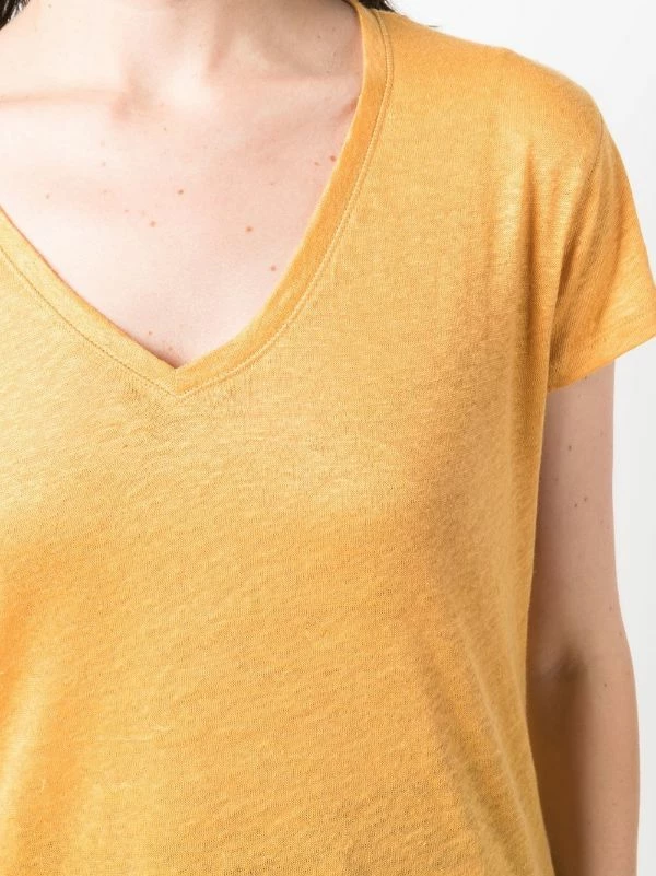 Senfgelb, Leinen/Flachs, V-Ausschnitt, kurze Ärmel, gerader Saum. BEWUSSTER SHOPPEN: Dieses Piece ist gut für den Style − und besser für die Umwelt. Es besteht zu mindestens 50% aus Materialien, die eine geringere Umweltbelastung nachweisen.