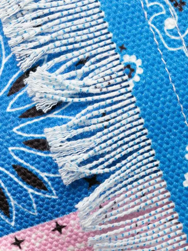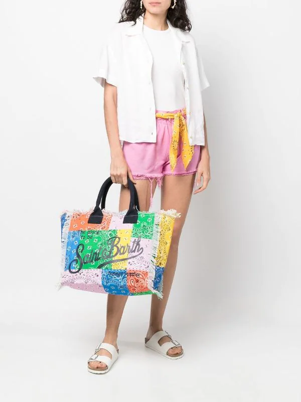 Mehrfarbig, Baumwolle, Bandana-Print, Fransen-Detail, runde Henkel, oben offen.