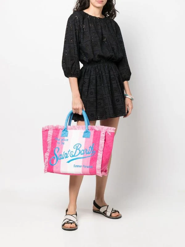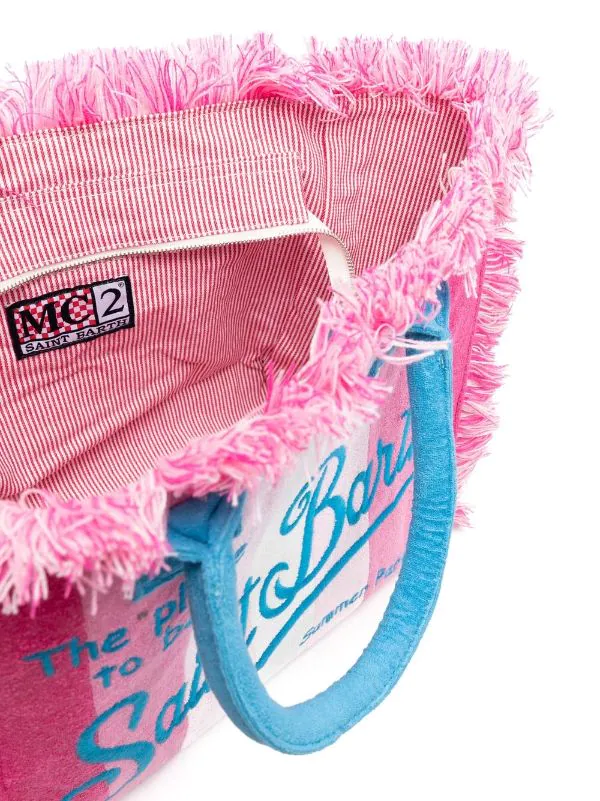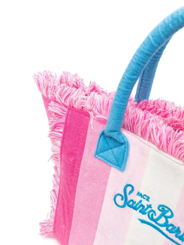 Baumwolle, Hot Pink, Fransen-Detail, Längsstreifen, Logo-Stickerei vorne, runde Henkel.
