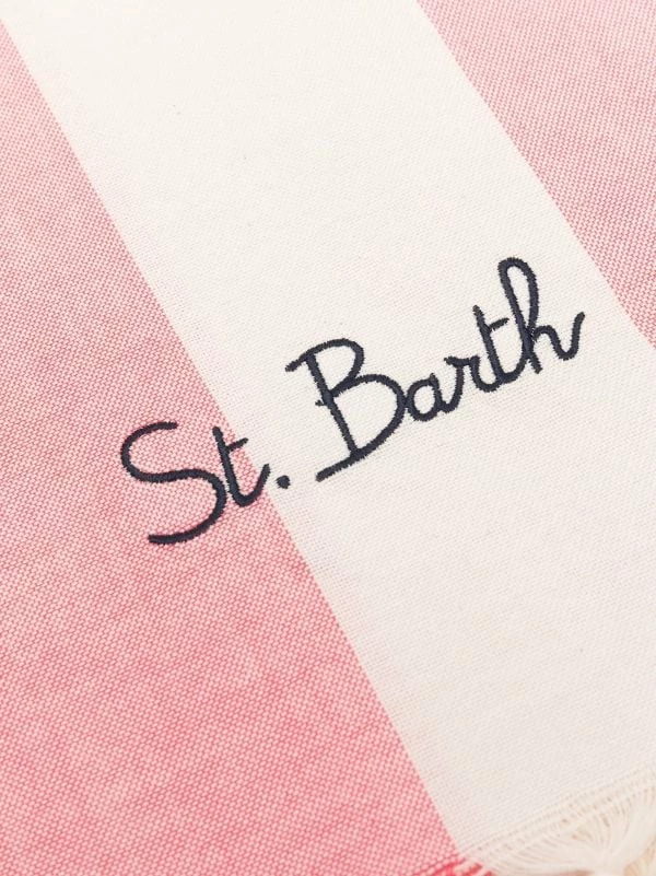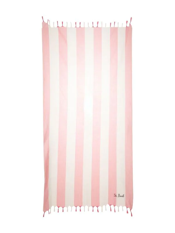 Blush-Rosa, Ecru, Baumwolle, Logo-Stickerei vorne, Längsstreifen, Fransen-Detail.