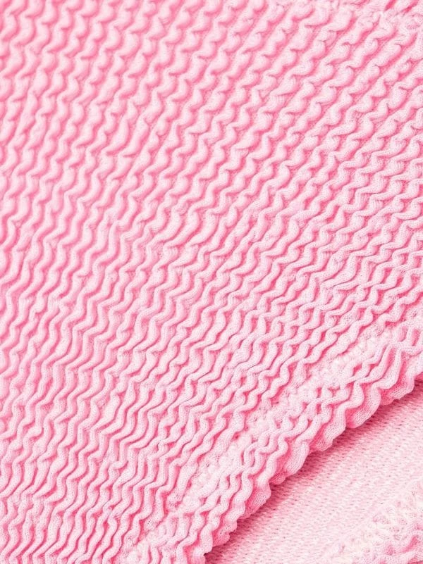 Kaugummirosa, Stretch-Design, Seersucker-Muster, String-Style. Swimwear kann nur über Ihrer eigenen Unterwäsche anprobiert werden. Taucherbrille und Schnorchel sind optional….