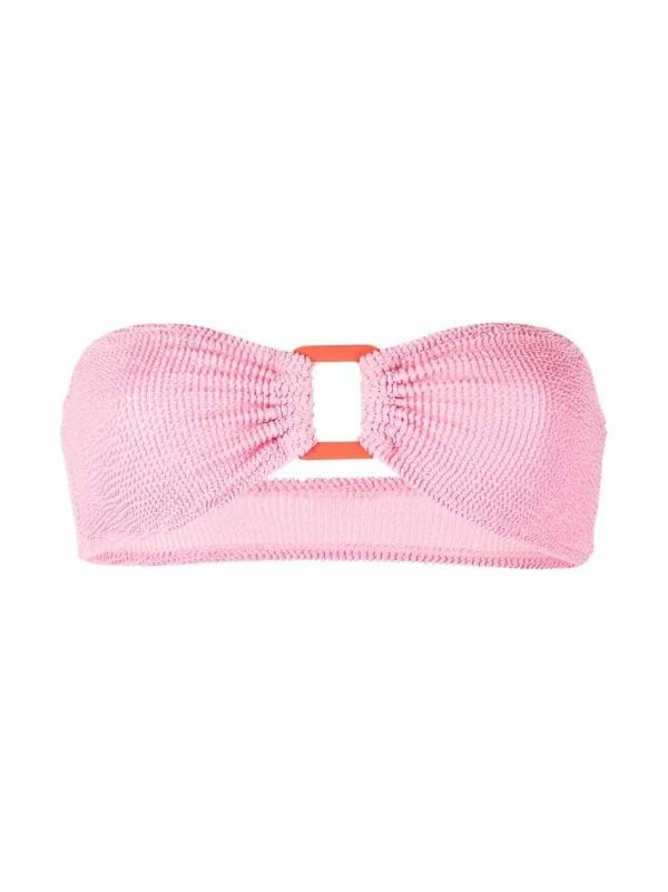 Kaugummirosa, Rot, Stretch-Design, Seersucker-Muster, Bandeau-Style, trägerlos. Swimwear kann nur über Ihrer eigenen Unterwäsche anprobiert werden. Taucherbrille und Schnorchel sind optional….