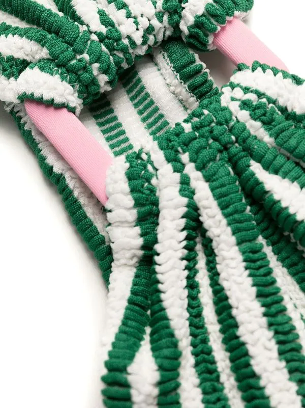 Grün, Weiß, Pink, Stretch-Design, Seersucker-Muster, Bandeau-Style, aufgedruckte Querstreifen, Rüschen. Swimwear kann nur über Ihrer eigenen Unterwäsche anprobiert werden. Taucherbrille und Schnorchel sind optional….