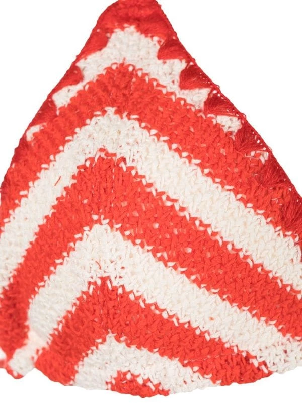 Blutrot, Wollweiß, dreieckig, diagonales Streifenmuster, Neckholder hinten. Swimwear kann nur über Ihrer eigenen Unterwäsche anprobiert werden. Taucherbrille und Schnorchel sind optional….
