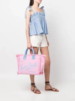( Neue Saison ) MC2 Saint Barth 02070B WHITE MULTICOLOR Gehäkelter Victoria Shopper Damen